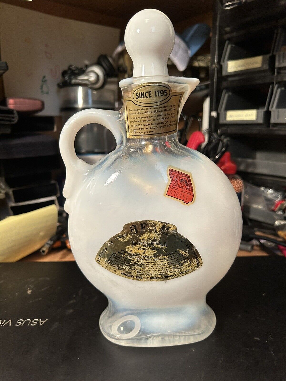 Beautiful Empty Bottle: Jim Beam's "Royal Opal" White Glass Decanterwe are a small business, owned by an active “Law Enforcement