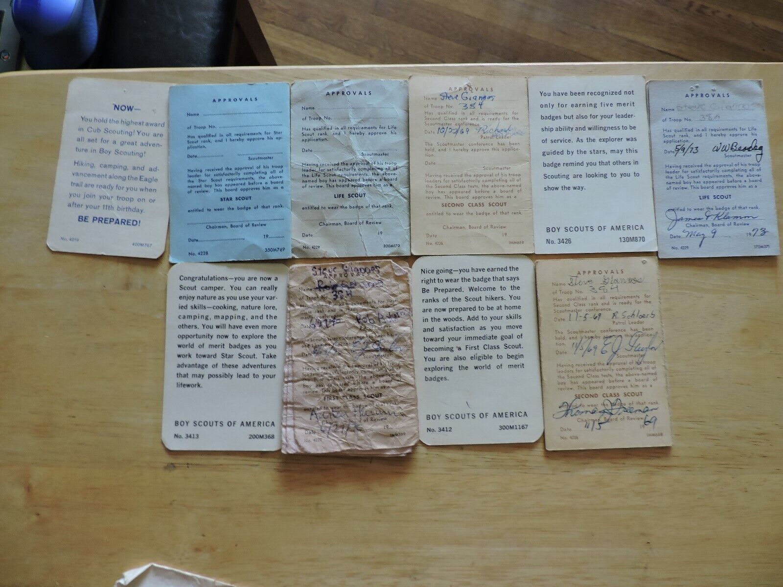 Boy Scout Memorabilia: Advancement Cards From Between 1968-1973