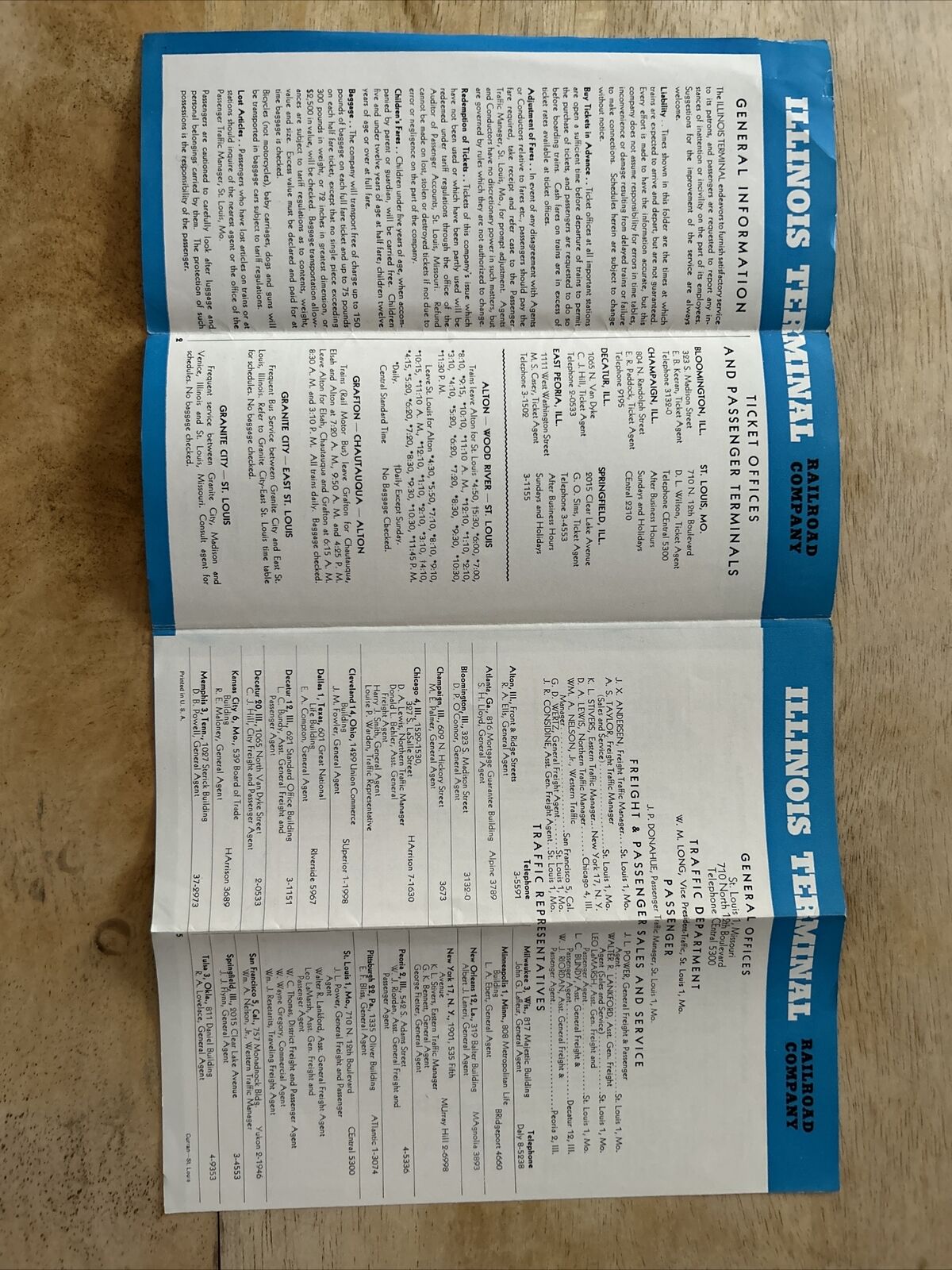 Illinois Terminal Time Table April 27, 1952