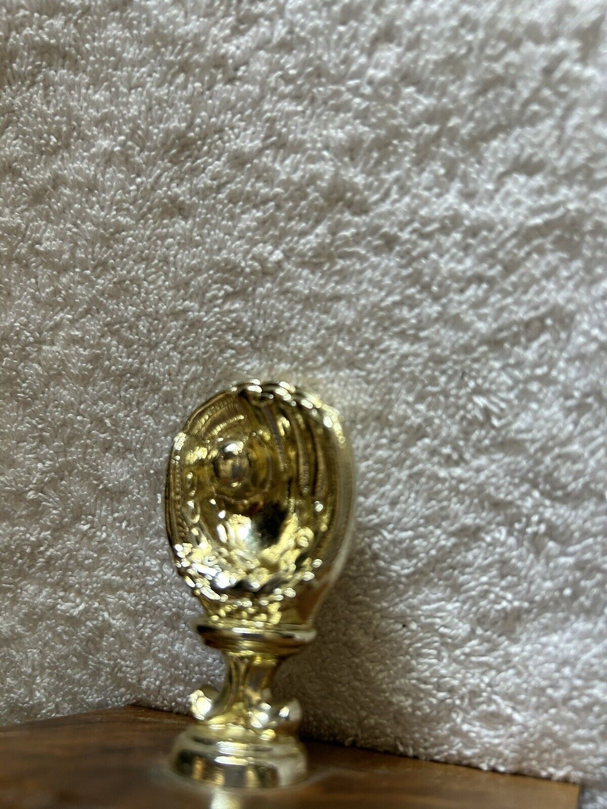 TROPHY: BASEBALL GLOVE--PLASTIC--WOOD BASE--3.75X3.5X3 INCHES