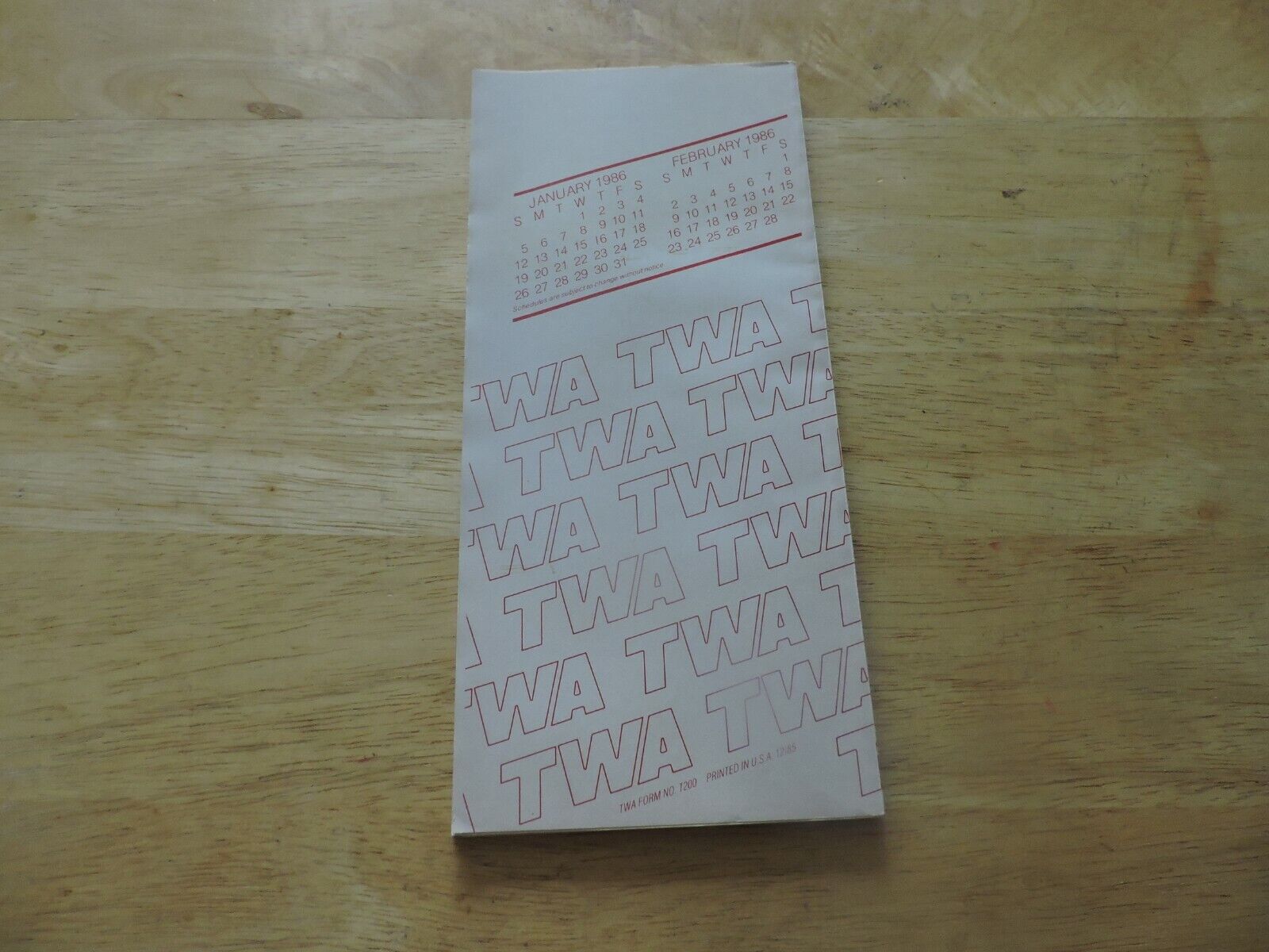 TWA Timeline Effective January 12- February 28 1986