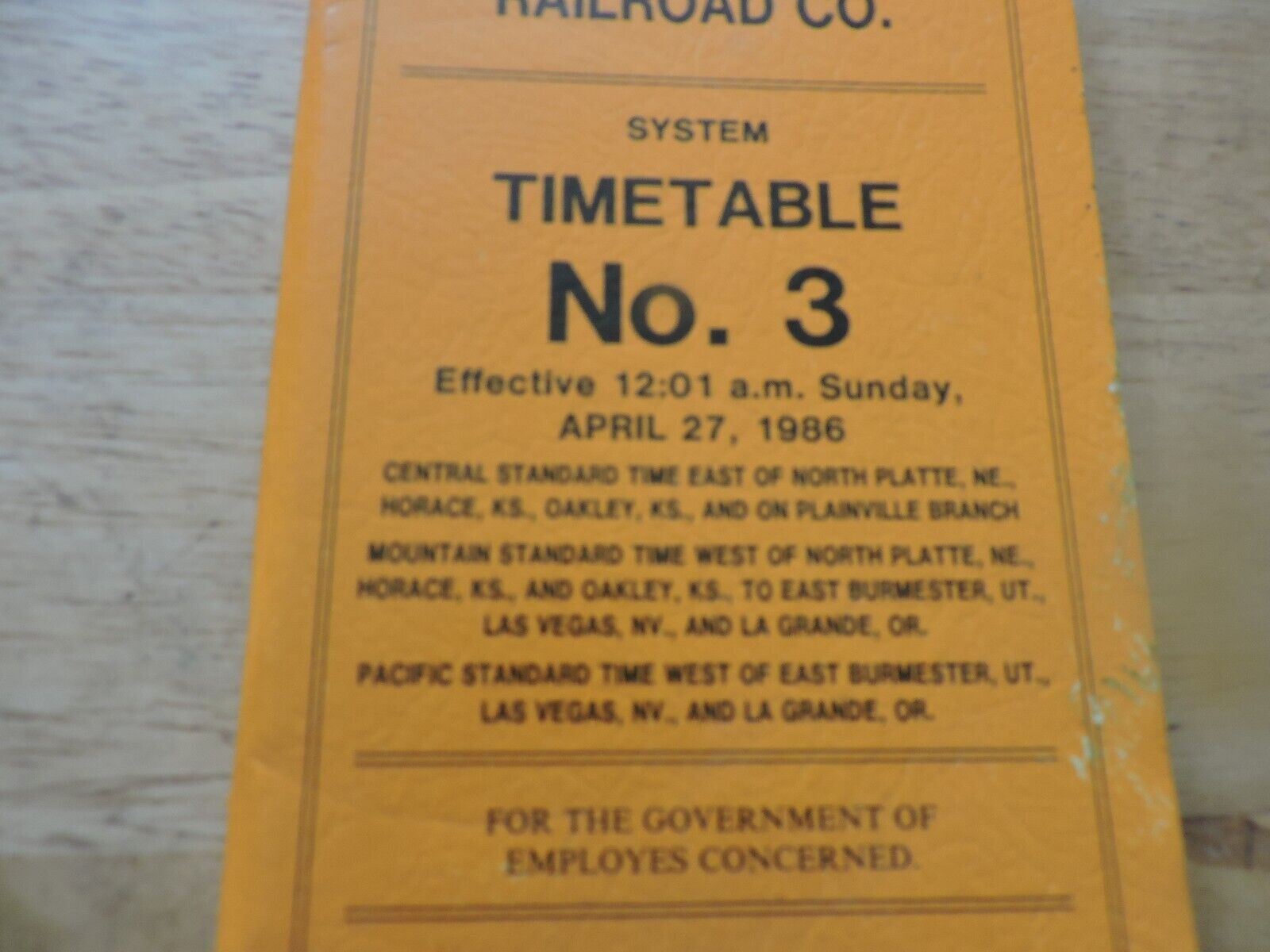 UNION PACIFIC RAILROAD CO. SYSTEM TIMETABLE NO. 3, 1986